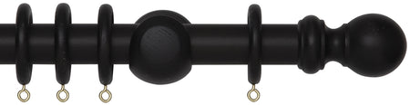 Rolls Woodline 50mm Wood Curtain Pole in a Black finish with traditional style finials.