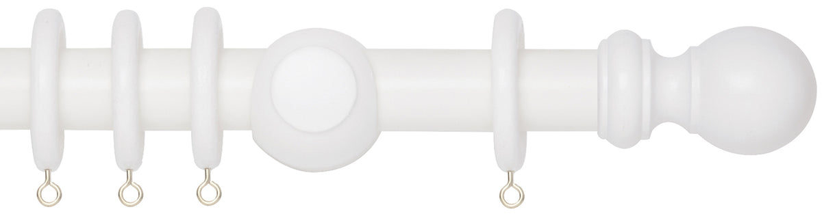 Rolls Woodline 50mm Wood Curtain Pole in a White finish with traditional style finials.